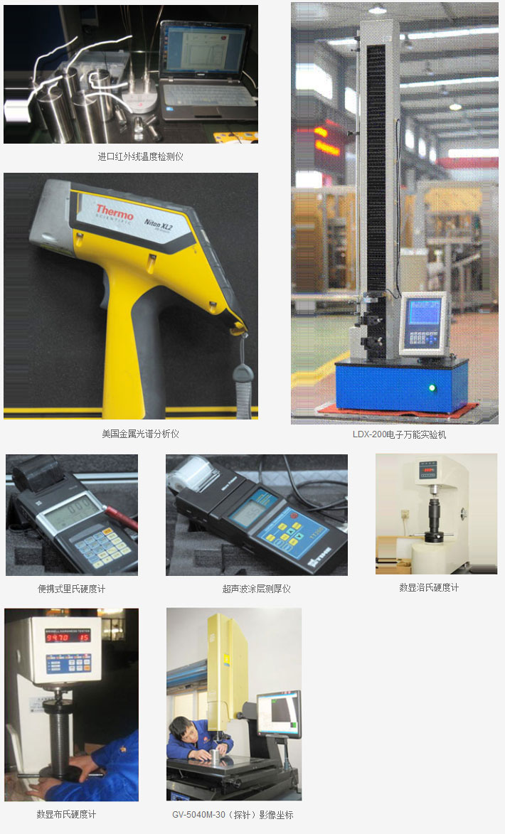 近年來,公司在檢測(cè)方面投入了大筆資金,以滿足各項(xiàng)產(chǎn)品質(zhì)量檢測(cè)的需要,確保所有產(chǎn)品特性能發(fā)揮到極致。公司具有全面的計(jì)量檢測(cè)規(guī)劃,檢測(cè)水平達(dá)國(guó)內(nèi)領(lǐng)先水平,擁有國(guó)家級(jí)計(jì)量校準(zhǔn)資質(zhì)的高級(jí)工程師。公司除常規(guī)的長(zhǎng)度計(jì)量器具、超聲波探測(cè)儀和測(cè)厚儀、噪音聲級(jí)計(jì)、機(jī)械天平和高精度電子天平、熱電偶溫度計(jì)、殘氧量測(cè)量?jī)x等外,還引進(jìn)了以下測(cè)量?jī)x器: